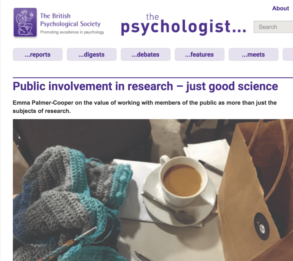 - British Psychological Society ‘The Psychologist’ article – ‘Public involvement in research – just good science’